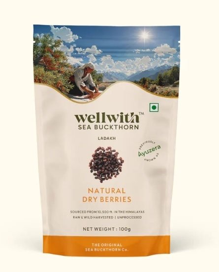 Our Seabuckthorn Dry Berries are a concentrated powerhouse of sun-dried nutrition, preserved to retain their potent ""Holy Fruit"" benefits. Naturally rich in rare Omega-7 and a spectrum of vitamins, these tart and tangy berries serve as a versatile superfood that can be enjoyed as a healthy snack or added to breakfast bowls. They provide a high-fiber, antioxidant-rich boost that supports digestive health and skin radiance, offering a convenient way to consume the resilient energy of the Himalayas in its most shelf-stable, natural form.